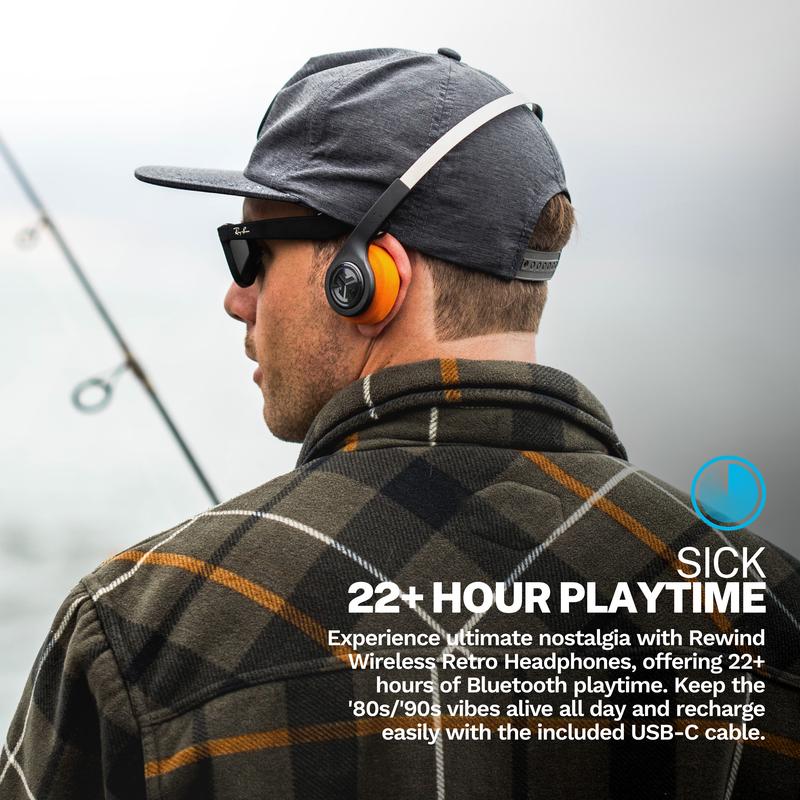 Rewind Wireless Retro Headphones with modern features • 20+ hours playtime • Lightweight retro design with foam pads •